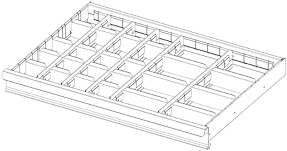 Set van 27 onderverdelingen voor laden van 75 mm voor ladekasten