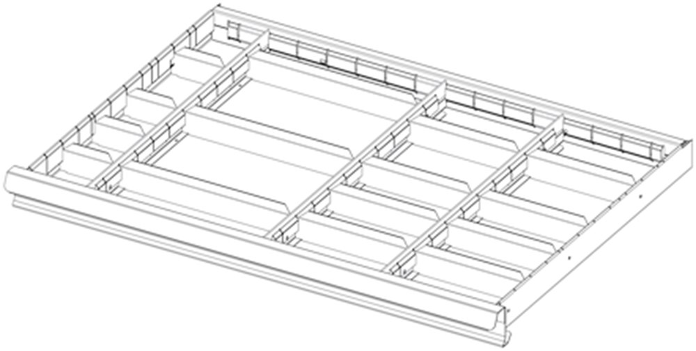 Set van 18 onderverdelingen voor laden van 50 en 75 mm voor ladekasten
