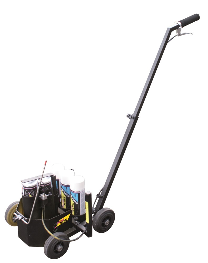 Geschikt hulpmiddel voor precieze lijnmarkeringen. Door het gelijktijdig spuiten met twee COLORMARK spuitbussen verloopt het werk dubbel zo snel.