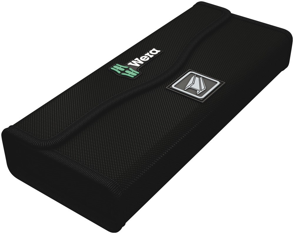 Compacte gereedschapsset met de 39 belangrijkste schroefgereedschappen voor metaalconstructiewerkzaamheden. Met de ongelooflijk snelle 1/4" ratel Zyklop Speed incl. accessoires; 7 hand- en machinedoppen in de formaten 5,5-13; 1 bit-handgreep; 13 bits met een lengte van 89 mm; 6 combidraadboorbits; 6 metaalspiraalboorbits in de diameters 3-10 mm; 1 schroefklauw voor het vasthouden van schroeven; 1 spanningszoeker 247; stoffen etui met hoge robuustheid en lange levensduur; rechtop te plaatsen voor overzichtelijke opslag in gereedschapsrek; vanwege de stoffen buitenzijde ook probleemloos op kwetsbare oppervlakken te leggen; laag gewicht en gering volume en daardoor makkelijk mee te nemen.