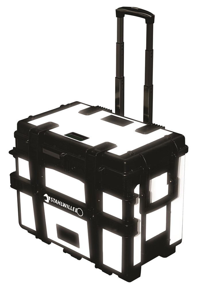 Zeer robuust en belastbaar voor professioneel gebruik, laag gewicht door het gebruik van ABS, 5 eenvoudig uitneembare, met transparante deksel afsluitbare schuifladen, schuifladen kunnen er in willekeurige volgorde worden ingeschoven, bovenop en voorop een afneembaar deksel, 1 uitneembare bak met 2 greep en 2 transparante schuifladendeksels onder de bovenste deksel, separaat documentenvak in het deksel, 4 posities voor naamplaatjes, 2 lichtlopende dubbele wielen aan de kant van de telescoopgreep, met 4 extra wielen leverbaar, waarvan 2 met vastzetrem (prijs op aanvraag), uittrekbare telescoopgreep om eenvoudig te transporteren, 2 draaggrepen aan de zijkant, resistent tegen skydrol, aceton, benzine en hydraulische oliën, 20 kg draagkracht, n,b,v, hangslot op 3 posities afsluitbaar, met reflecterende folie rondom voor verhoogde veiligheid bij werkzaamhden in een donkere omgeving.