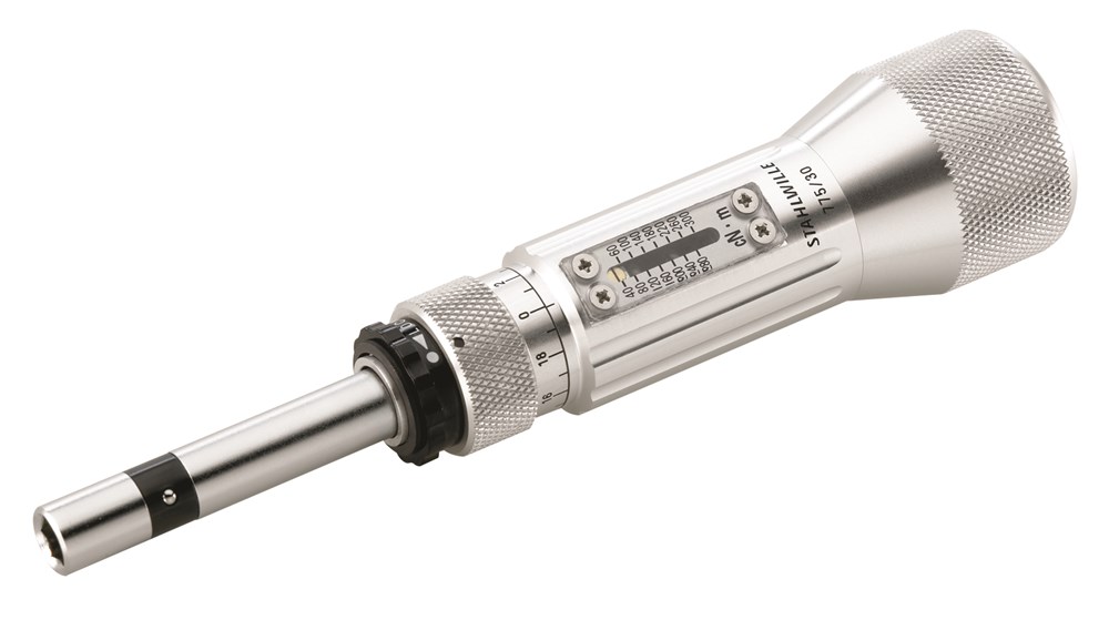 Klikkend, voor het gecontroleerd aanhalen in het cNm-bereik, voor enkelvoudig gebruik en serie-fabricage, schroefdrukveer als meetelement, voor rechtsom-- en linksomgebruik, met 1/4" binnenzeskant (F 6,3 DIN 3126/ISO1173), via micrometerschaal (draaibare schaal) traploos instelbaar, vrijloopkoppeling voorkomt het overtrekken van de ingestelde waarde, vorm en oppervlakte van de handgreep zorgt voor een betrouwbare overbrenging van het aanhaalmoment, insteekgereedschappen: alle bits met 1/4" buitenzeskant E 6,3, zoals kruiskop, POZIDRIV/SUPADRIV®, sleuf, TORX®, zeskant; voor de kleinste schroefverbindingen worden bits met 4 mm buitenzeskant en een bithouder (adapter) nr. 3115/2 voor schroevendraaierbits model C4 en buitenzeskant 1/4" (E 6,3 DIN 3126/ISO 1173) gebruikt, met certificaat, weergave-afwijking ± 6 %.