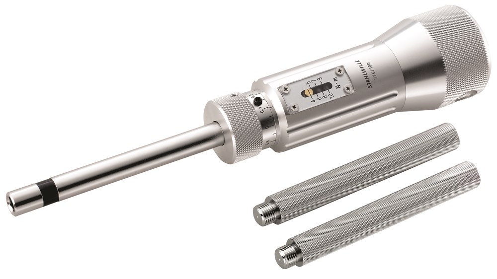 Klikkend, voor het gecontroleerd aanhalen in het cNm-bereik, voor enkelvoudig gebruik en serie-fabricage, schroefdrukveer als meetelement, voor rechtsom-- en linksomgebruik, met 1/4" binnenzeskant (F 6,3 DIN 3126/ISO1173), via micrometerschaal (draaibare schaal) traploos instelbaar, vrijloopkoppeling voorkomt het overtrekken van de ingestelde waarde, vorm en oppervlakte van de handgreep zorgt voor een betrouwbare overbrenging van het aanhaalmoment, insteekgereedschappen: alle bits met 1/4" buitenzeskant E 6,3, zoals kruiskop, POZIDRIV/SUPADRIV®, sleuf, TORX®, zeskant; voor de kleinste schroefverbindingen worden bits met 4 mm buitenzeskant en een bithouder (adapter) nr. 3115/2 voor schroevendraaierbits model C4 en buitenzeskant 1/4" (E 6,3 DIN 3126/ISO 1173) gebruikt, met certificaat, weergave-afwijking ± 6 %.
