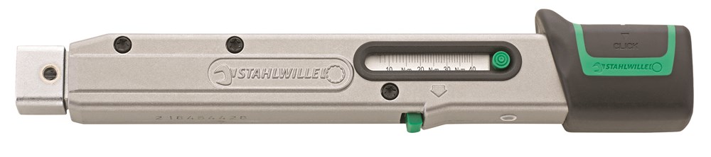 Klikkend, inwendig vierkant voor verwisselbare insteekgereedschappen, bliksemsnelle instelling, dubbel-stop-signaal,schaalverdeling in Nm, terugstelling naar “0” is niet noodzakelijk, daar het meetelement alleen bij het aanhalen wordt belast, linksomgebruik d.m.v. het omdraaien van de insteekgereedschappen, doortrekken na de ''klik'' of belasting tegen de functierichting in, bijv. het lostrekken van vastzittende bouten, hebben geen invloed op het meetmechanisme, d.w.z. het mechanisme wordt niet beschadigd, kalibratie met de perfectControl kalibratiebank nr. 7794 of de kalibreerinstallatie nr. 7706, indien nodig te justeren zonder demontage, met certificaat, weergave-afwijking ± 4 %.
