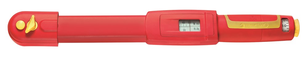 Klikkend, met dubbel-geïsoleerde kunststoffen bekleding voor werken onder spanning, inwendig vierkant voor verwisselbare insteekgereedschappen, verwisselen van de insteekratelkop 725QR VDE zonder herkeuring van de isolatie, QuickRelease-veiligheidsvergrendeling, snelle, nauwkeurige instelling m.b.v. QuickSelect-snelverstelling, dubbel-stop-signaal, zeer goed afleesbare dubbele schaalverdeling, tweekleurig, N·m/ft·lb resp. ft·lb/in·lb, geen terugstelling naar ‘0’ noodzakelijk, daar het meetelement alleen bij het aanhalen wordt belast, doortrekken na de ‚klik‘ of belasting tegen de functierichting in, bijv. het lostrekken van vastzittende bouten, hebben geen invloed op het meetmechanisme, d.w.z. het mechanisme wordt niet beschadigd, isolatie uit slijtvast speciaal kunststof, bestand tegen verdunde basen, koolwaterstoffen, brandstoffen en oliën, kalibratie met de perfectControl kalibratiebank nr. 7794 of de kalibreerinstallatie nr. 7706. Indien nodig te justeren zonder demontage, met certificaat, weergaveafwijking ± 3%.