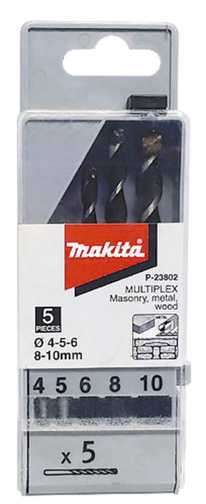 5-delige multimateriaal borenset: diameter 4, 5, 6, 8 en 10mm.