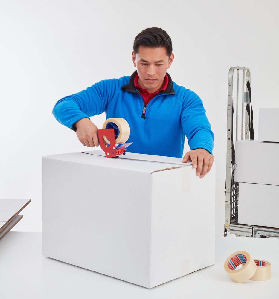 De verpakkingstape is geschikt voor het veilig sluiten van middelgrote pakketten en kan verwerkt worden met een tesa® handdispenser of door gebruik te maken van een machine. De combinatie van gevormd PVC-folie en een sterk hechtende kleefmassa van natuurrubber geeft de verpakkingstape het performantieniveau dat door de professionele verpakkingssector geëist wordt. De gevormde folie zorgt er ook voor dat de tape gelijkmatig en vlot kan worden afgerold.