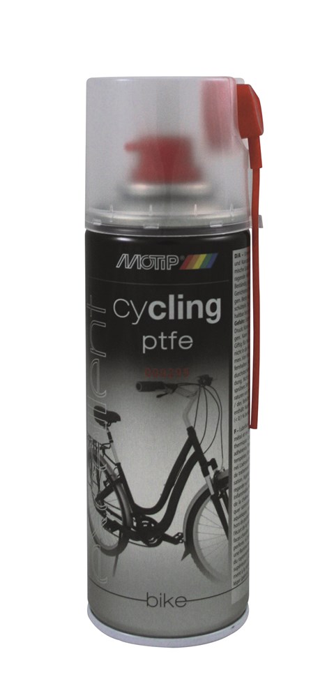 Universeel smeermiddel met uitstekende mechanische en thermische stabiliteit voor het behandelen van mechanische onderdelen van metaal. PTFE spray heeft een zeer geringe wrijvingscoëfficiënt en een goede hechting. PTFE spray is bestand tegen weersinvloeden en zwakke zuren en basen. MoTip Cycling PTFE Spray heeft een fijne structuur (deelgrootte circa 5 micrometer) en een gericht spuitbeeld.