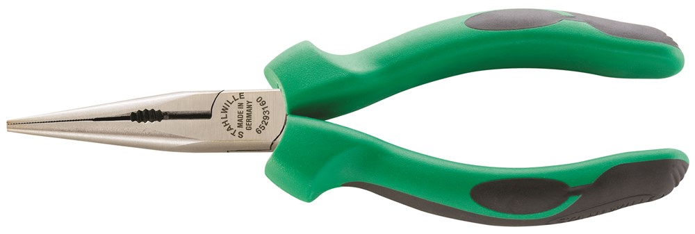 DIN ISO 5745, model A (recht), plat-ronde, lange bekken, met brandergat voor het vasthouden van moeren en stiftschroeven, getande grijpvlakken, precisie-snijkanten, voor harde en zachte draadsoorten, snijkanten inductief gehard ca. 60 HRC.