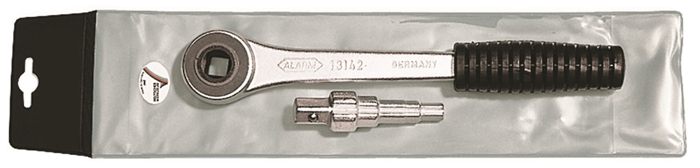 DIN 3122C/ISO 3315, ratel met inwendig vierkant 1/2'' nr. 13142 en 5-traps vierkant 3/8''-1''; voor monteren en verwijderen van radiator- en retourventielen.