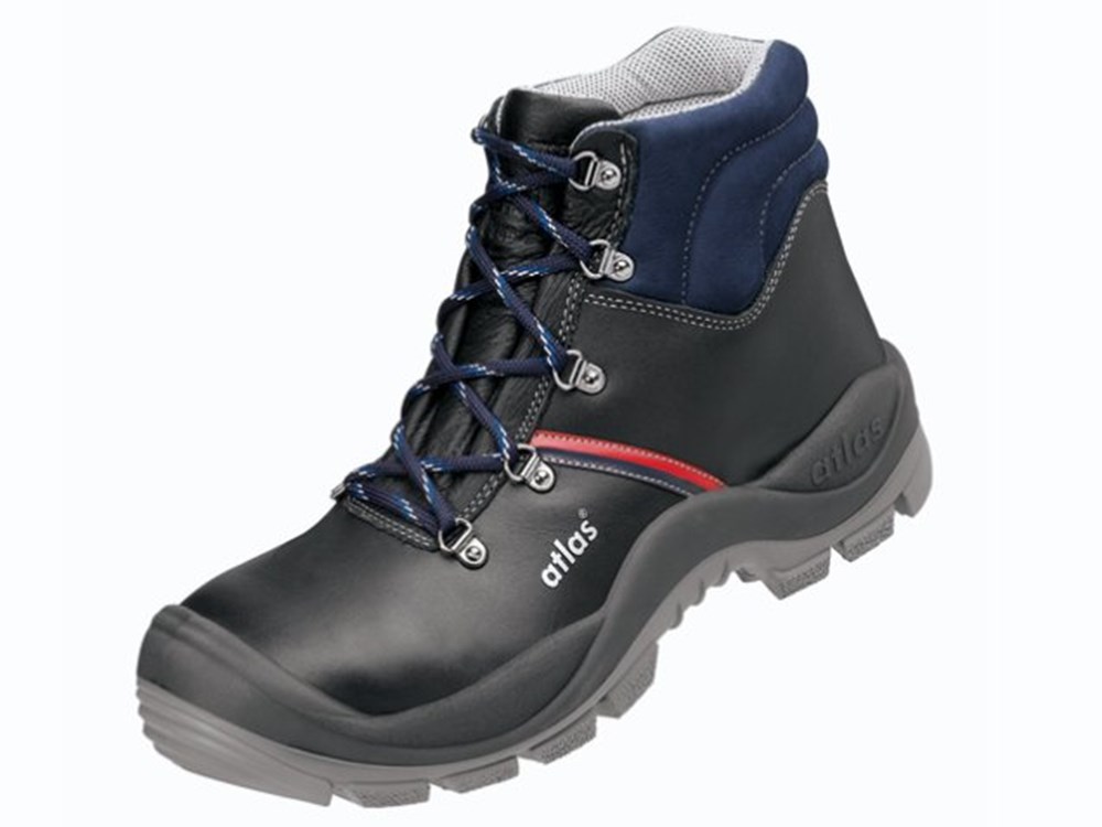 Veiligheidsschoen Anatomic Bau 500 zwart, nerfleder, stalen zool, overneus, hoog S3, Atlas