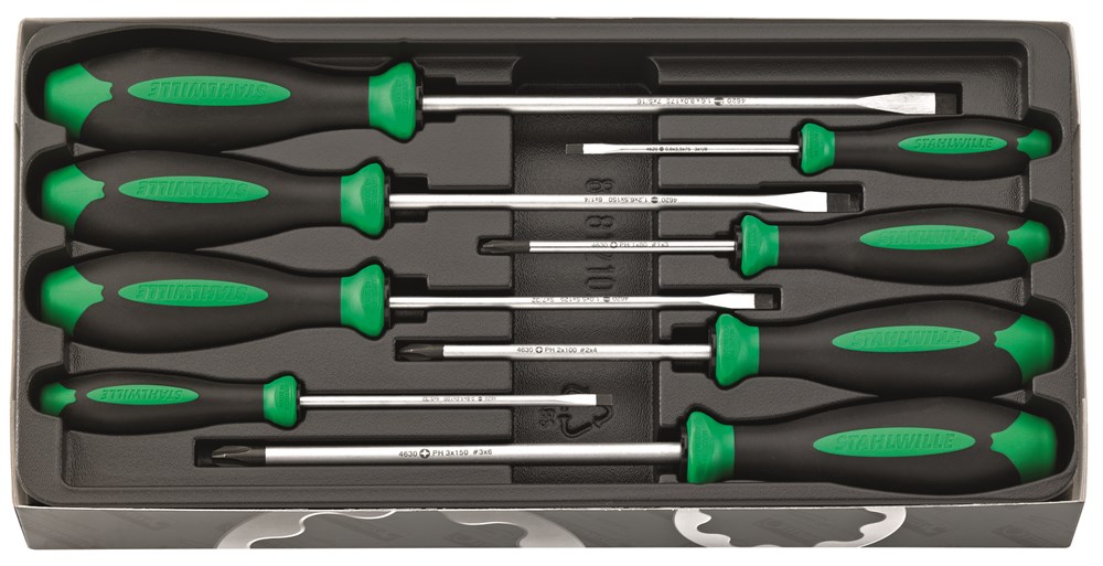 8-delig, inhoud: 4620: gr. 1 (0,6 x 3,5 x 75 mm), gr. 2 (0,8 x 4,0 x 100 mm), gr. 3 (1,0 x 5,5 x 125 mm), gr. 4 (1,2 x 6,5 x 150 mm), gr. 5 (1,6 x 8,0 x 175 mm); 4630: gr. 1; gr. 2; gr. 3.