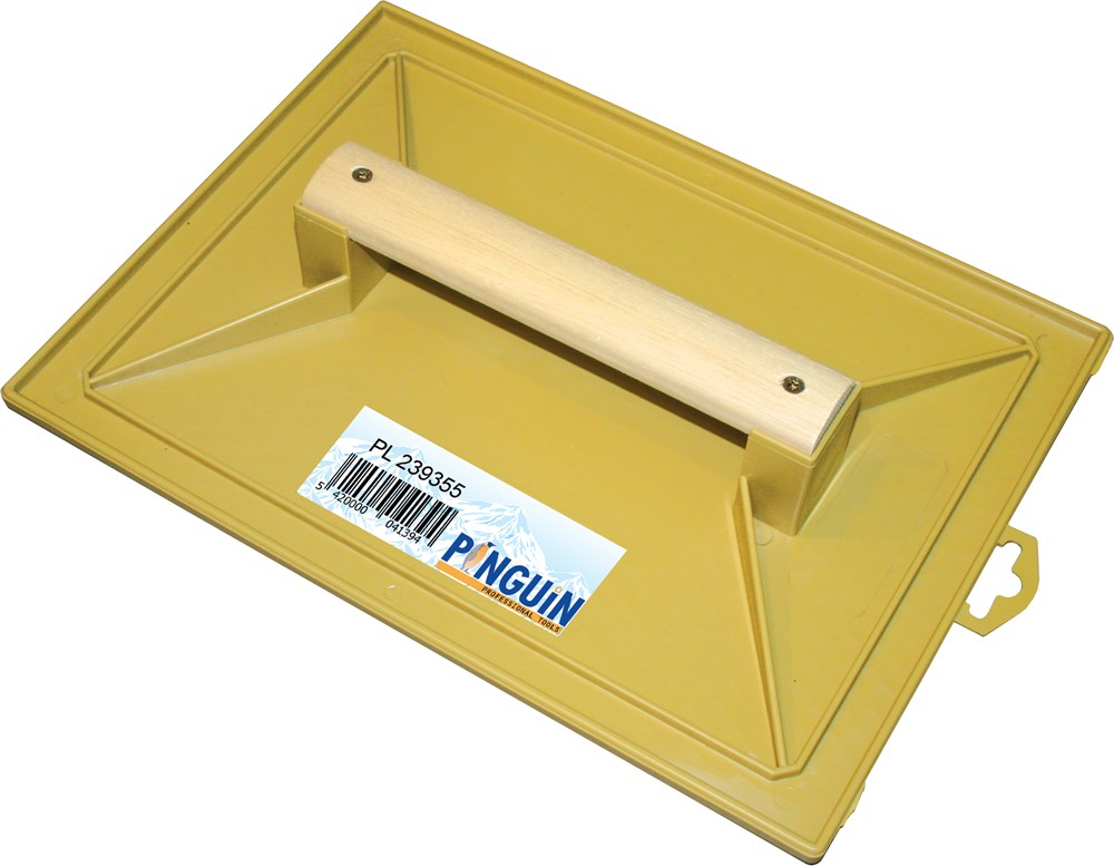 Schuurbord ABS geel, houten handgreep - rechthoekig