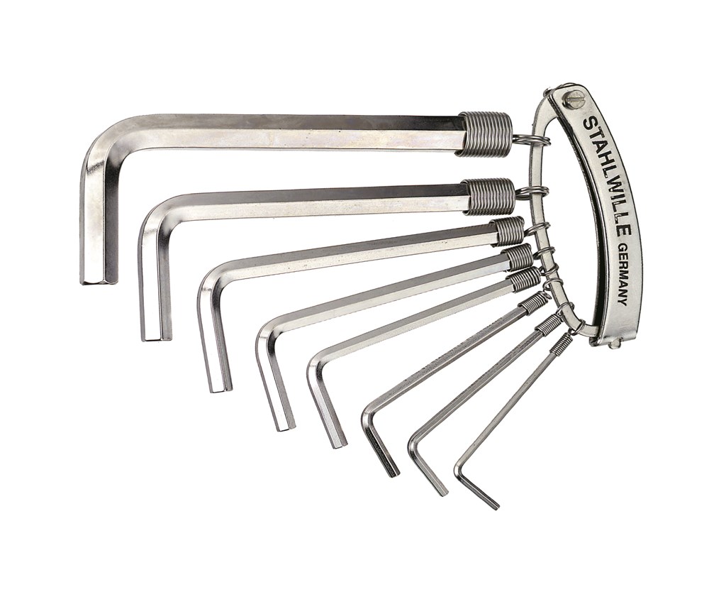 8-delig, aan beugel, voor binnenzeskantbouten, Chroom-Vanadium, vernikkeld, inhoud: 2; 2,5; 3; 4; 5; 6; 8; 10 mm.