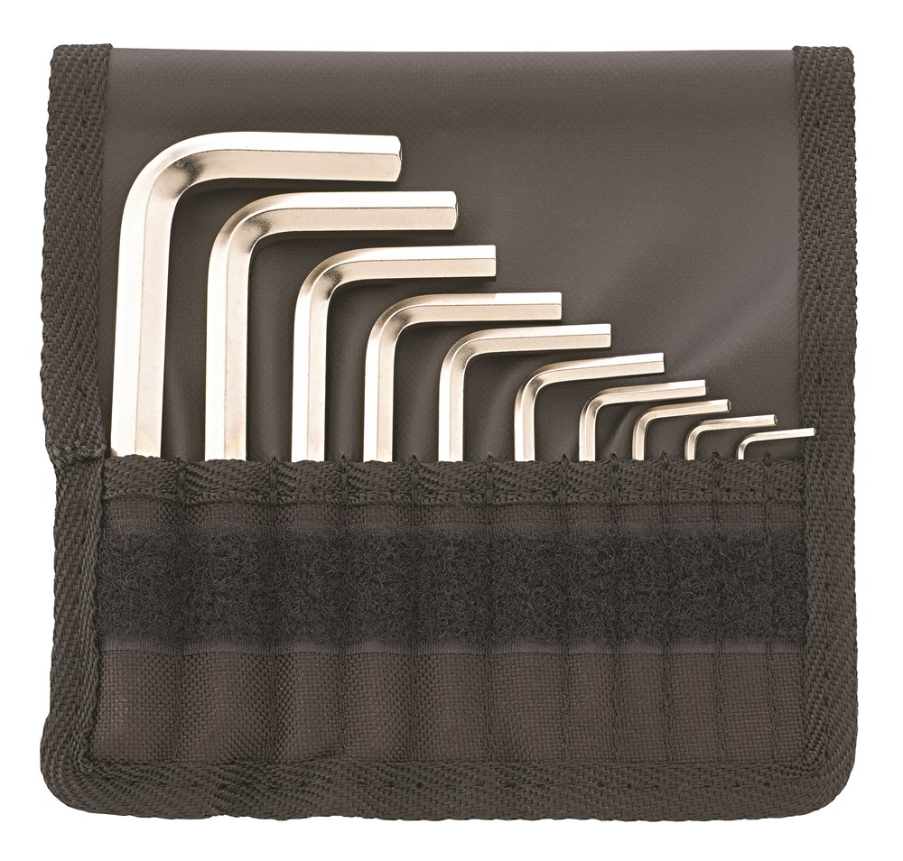10-delig, in stoffen tas, DIN ISO 2936 (metrisch), voor binnenzeskantbouten, Chroom-Vanadium, vernikkeld, inhoud: 1/16; 5/64; 3/32; 1/8; 5/32; 3/16; 7/32; 1/4; 5/16; 3/8".