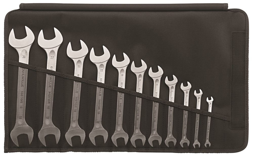 11-delig, inhoud: 1/4 x 5/16; 3/8 x 7/16; 1/2 x 9/16; 9/16 x 5/8; 19/32 x 11/16; 5/8 x 3/4; 11/16 x 13/16; 3/4 x 7/8; 25/32 x 13/16; 7/8 x 15/16; 1.1/8 x 1.5/16''