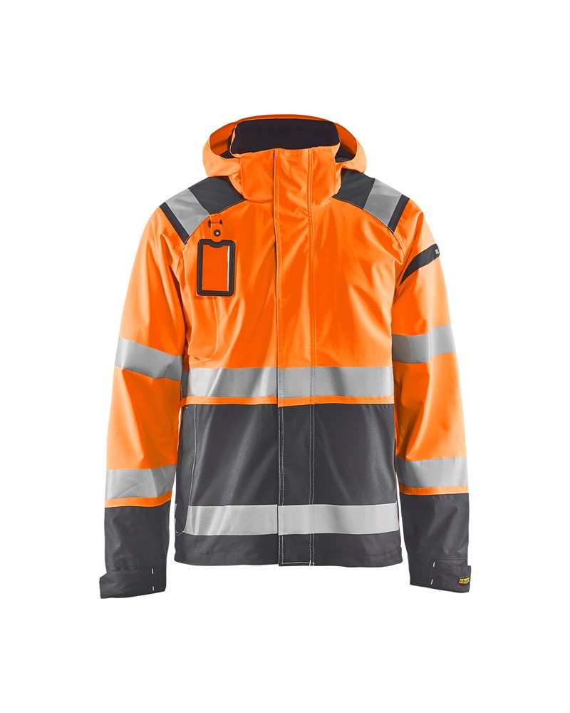 100% polyester, twill, mechanische stretch, gelamineerd, wind- en waterdicht 10.000 mm, ademend vermogen 4.000 g/m²/24u, 150 g/m² g/m²