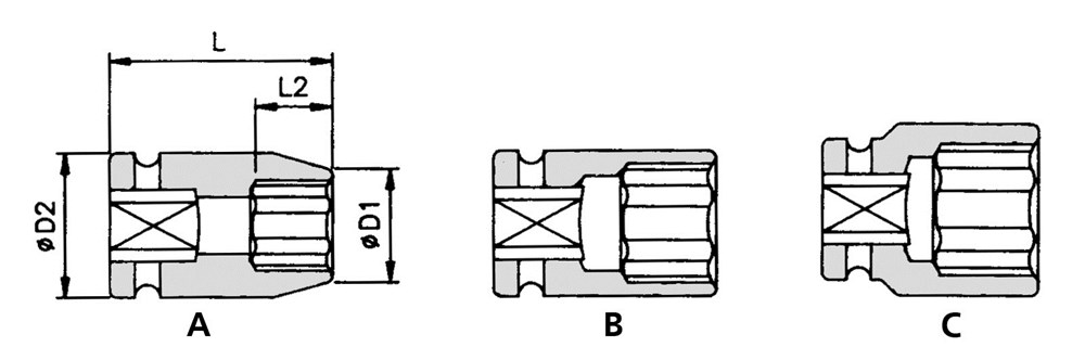 Slagdoppen 1/2" vierkant - 12-kant diep