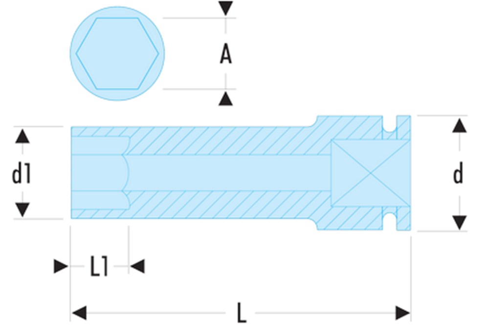Dop impact 3/4 , dunwandig-convex 21 mm