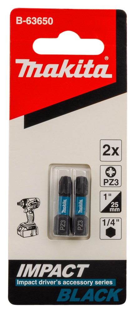 Slagschroefbits Vorm C. Ze zijn bij uitstek geschikt voor slagschroevendraaiers. Deze bits onderscheiden zich door extreem hoog torsie vermogen en pasvorm. Bovendien beschermt de gekleure coating (zwart of goud) tegen roestvorming. Voor zachte verbindingen.