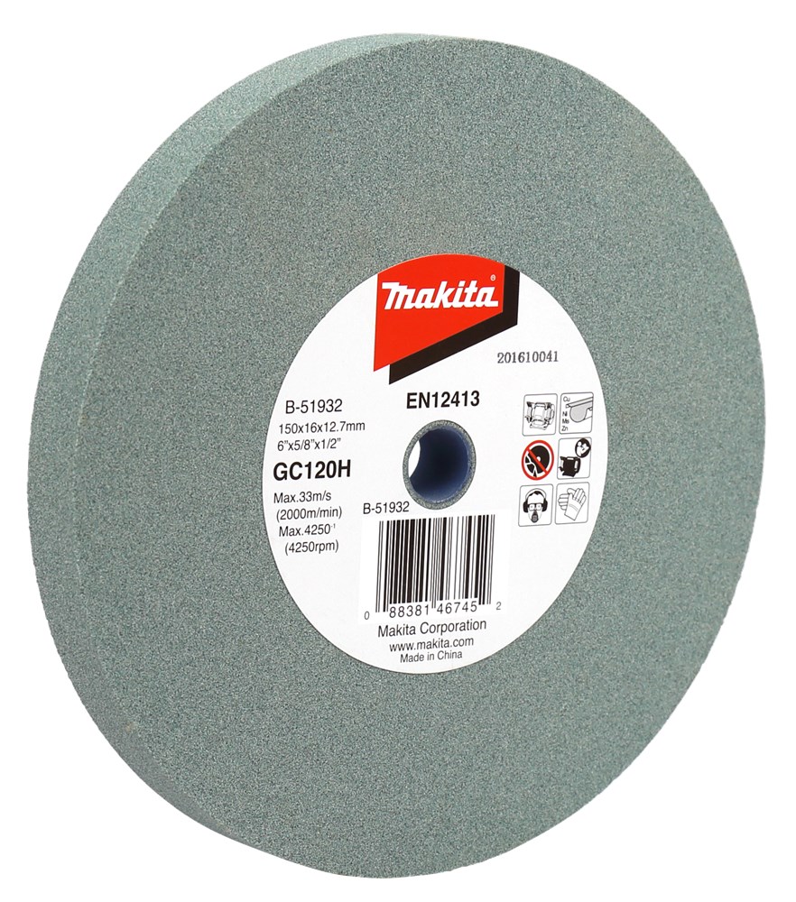 Slijpsteen tbv werkbankslijpsteenmachines 150 en 205 mm en rechte slijper 125 mm. Slijpsteen voor werkbankslijper, geschikt voor non-ferro materialen. Korrel 120 Passend op Makita Model: GB602, GB602