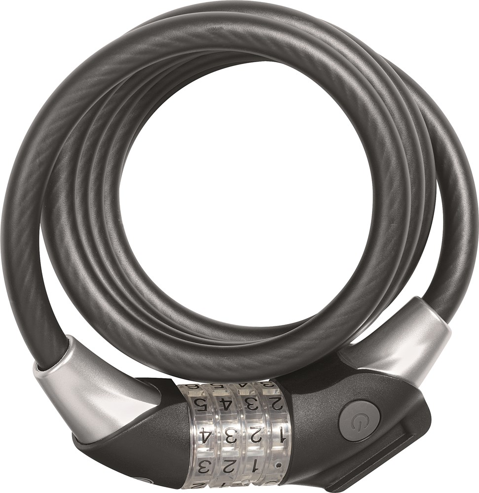 Het spiraalkabelslot Raydo Pro 1450 van ABUS met verlichte cijferwals, maakt in het donker en in de duisternis een duidelijk zicht op de cijfers mogelijk.