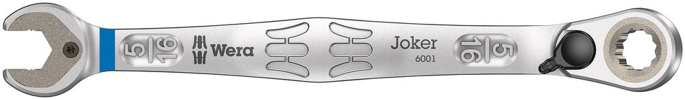 Joker steek/ring-ratelsleutel met gebogen ratelzijde en omschakelpal. Met vasthoudfunctie via metalen plaat in bek, om het verliezen van schroeven en moeren te reduceren. De geïntegreerde eindaanslag voorkomt het wegglijden naar beneden van de schroefkop en maakt hoge draaimomenten mogelijk. De verwisselbare metalen plaat in de bek houdt met extra harde tanden schroeven en moeren en vermindert het risico op wegglijden. De intelligente dubbele zeskantgeometrie zorgt voor een sluitende verbinding met schroef of moer en vermindert zo ook het risico op wegglijden. Dankzij de kleine terughaalhoek van slechts 30° aan de steekzijde behoort het tijdrovende omkeren van de sleutel tijdens het schroeven tot het verleden. Het omschakelbare ratelmechaniek aan de ringzijde met hoge fijne vertanding (80 tanden) biedt veel flexibiliteit, ook op plekken waar weinig ruimte is. Hoorbaar nauwkeurig ratelmechaniek. Het robuuste, tweedelige vergrendelingselement zorgt bovendien voor een zeer goede stabiliteit. Met 15° gebogen ratelzijde voor veilig werken bij hoge draaimomenten. De speciale smeedvorm maakt overdracht hoge draaimomenten mogelijk en geeft het geheel een hoge buigstijfheid. Gemaakt van sterk chroom-molybdeen staal met nikkel-chroom coating voor een hoge bescherming tegen corrosie. Met 'Take it easy'-Toolfinder: Kleurcodering op grootte.