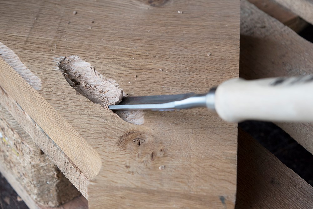 Halfronde guts beitel "type WH355" met houten greep