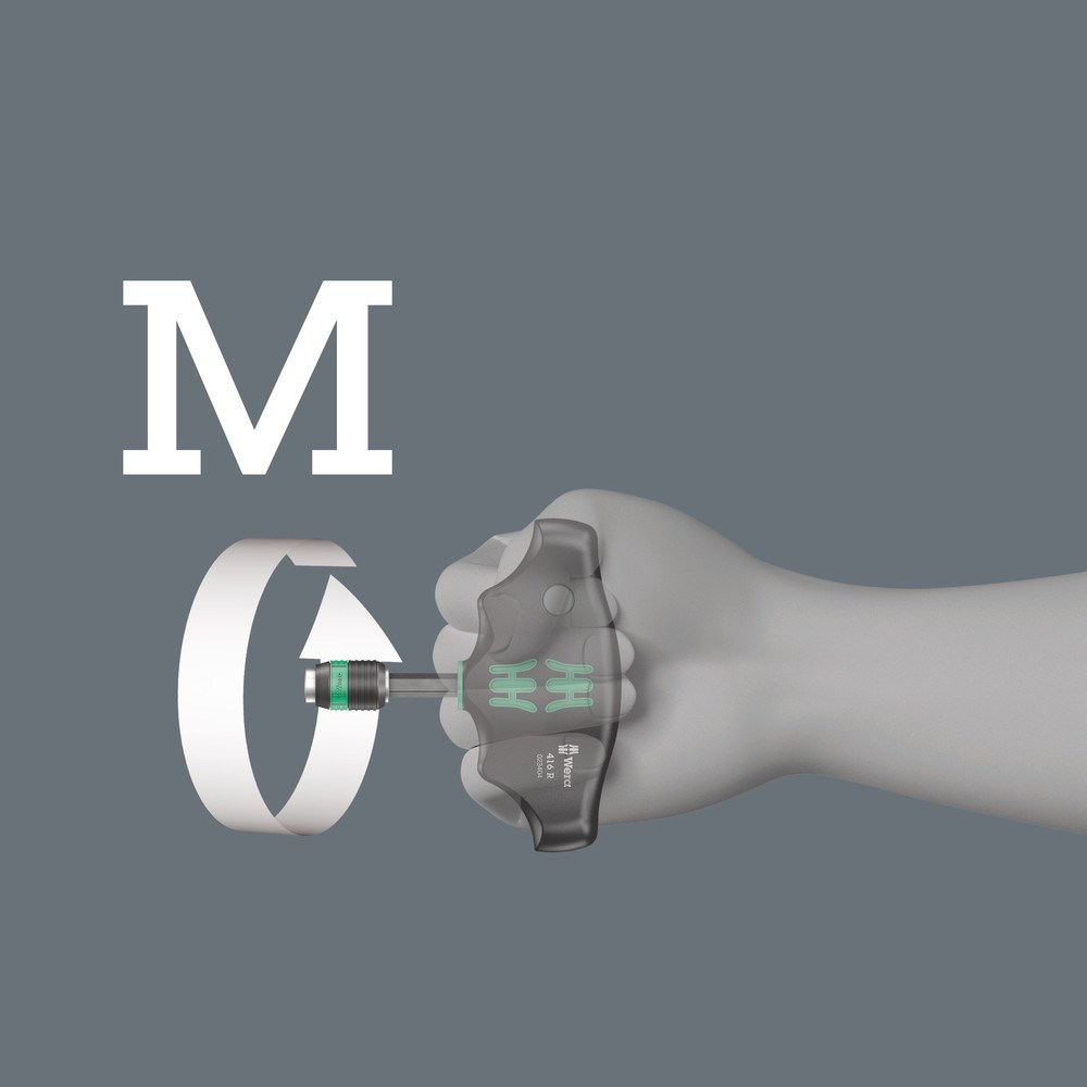 Schroevendraaiers met T-greep: de ideale greepvorm maakt overdracht van uiterst hoge aanhaal- en losdraaimomenten mogelijk. Dankzij de ergonomische vorm van de greep wordt de bal van de hand goed opgevuld en komen de vingers veilig in de zacht afgeronde inkepingen in de greep te liggen. De gehele hand krijgt grip op de handgreep waardoor wrijvingsverliezen tussen hand en greep worden voorkomen. Bithouder voor plaatsing van bits met 1/4" buitenzeskantaandrijving conform DIN ISO 1173-C 6,3 en E 6,3. Met ‘Rapidaptor’ technologie voor razendsnel wisselen van de bits.