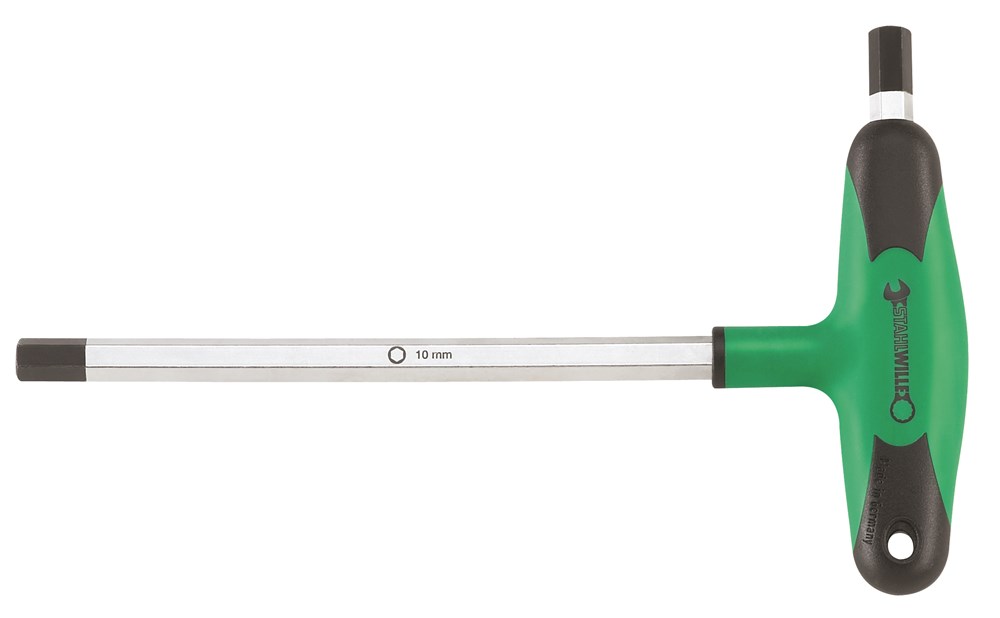 Met 2-componenten-T-greep, voor binnenzeskantbouten, met twee zeskantstiften, Chroom-Vanadium, matverchroomd, zwarte punt.