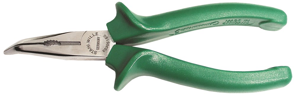 DIN ISO 5745, model B (45° zijwaarts gebogen), platronde, lange bekken, met brandergat voor moeren en stiftschroeven, getande grijpvlakken, precisie-snijkanten, voor harde en zachte draadsoorten, snijkanten inductief gehard ca. 60 HRC.