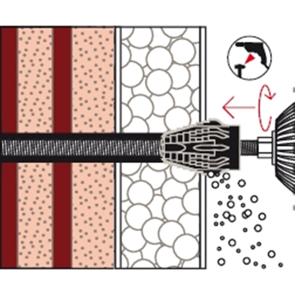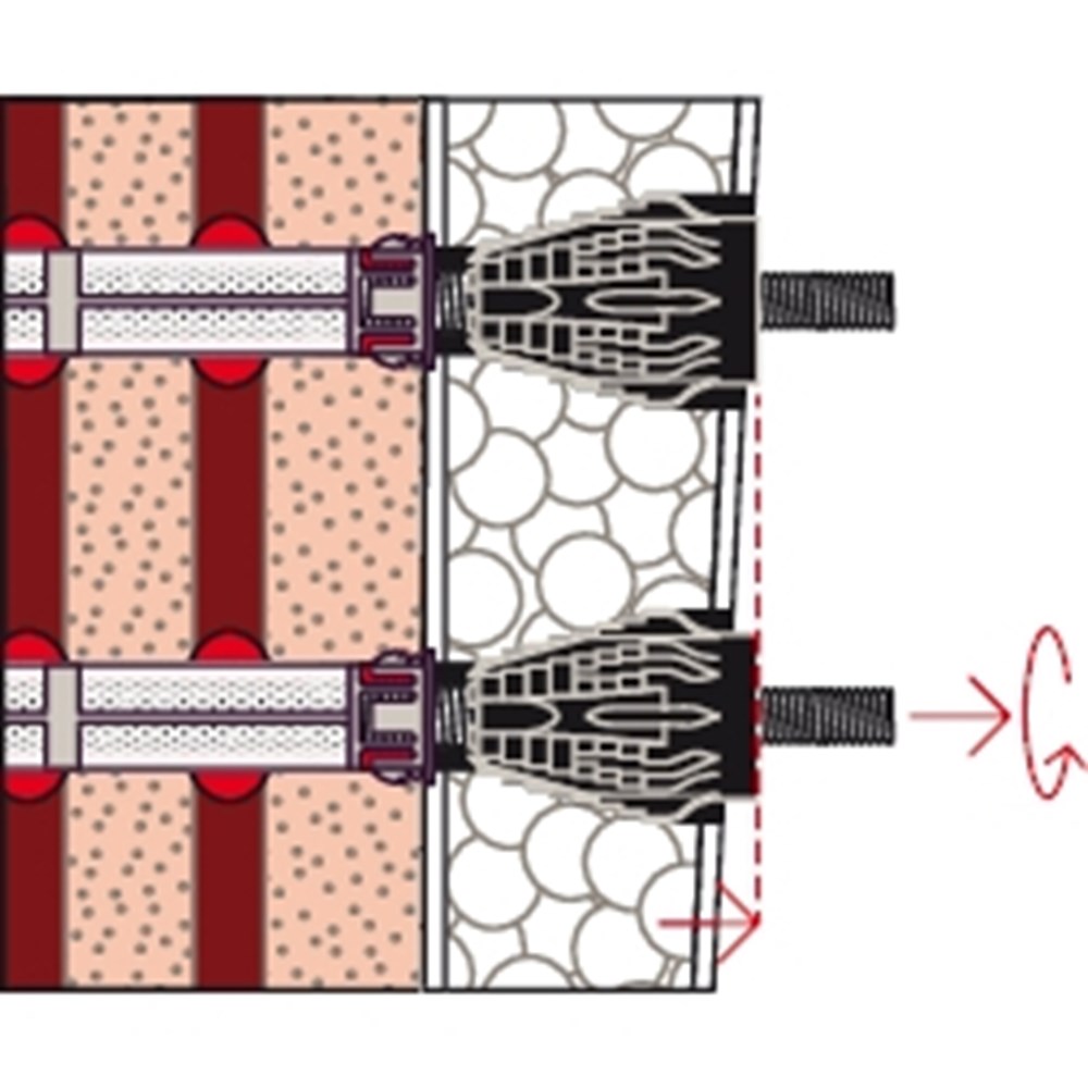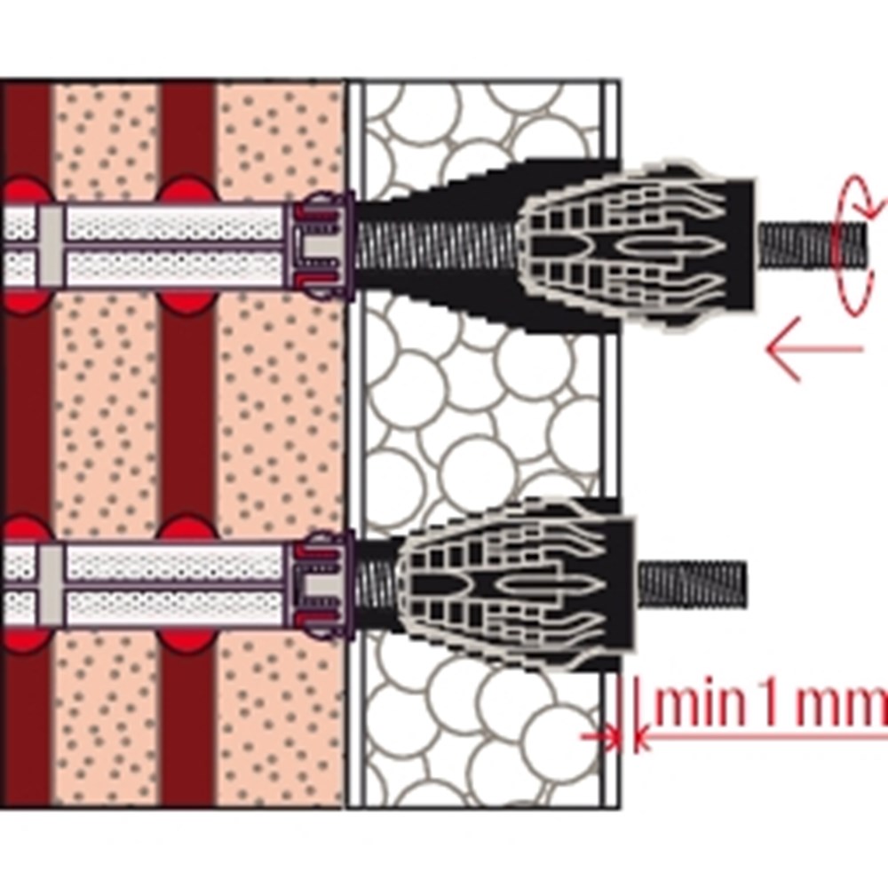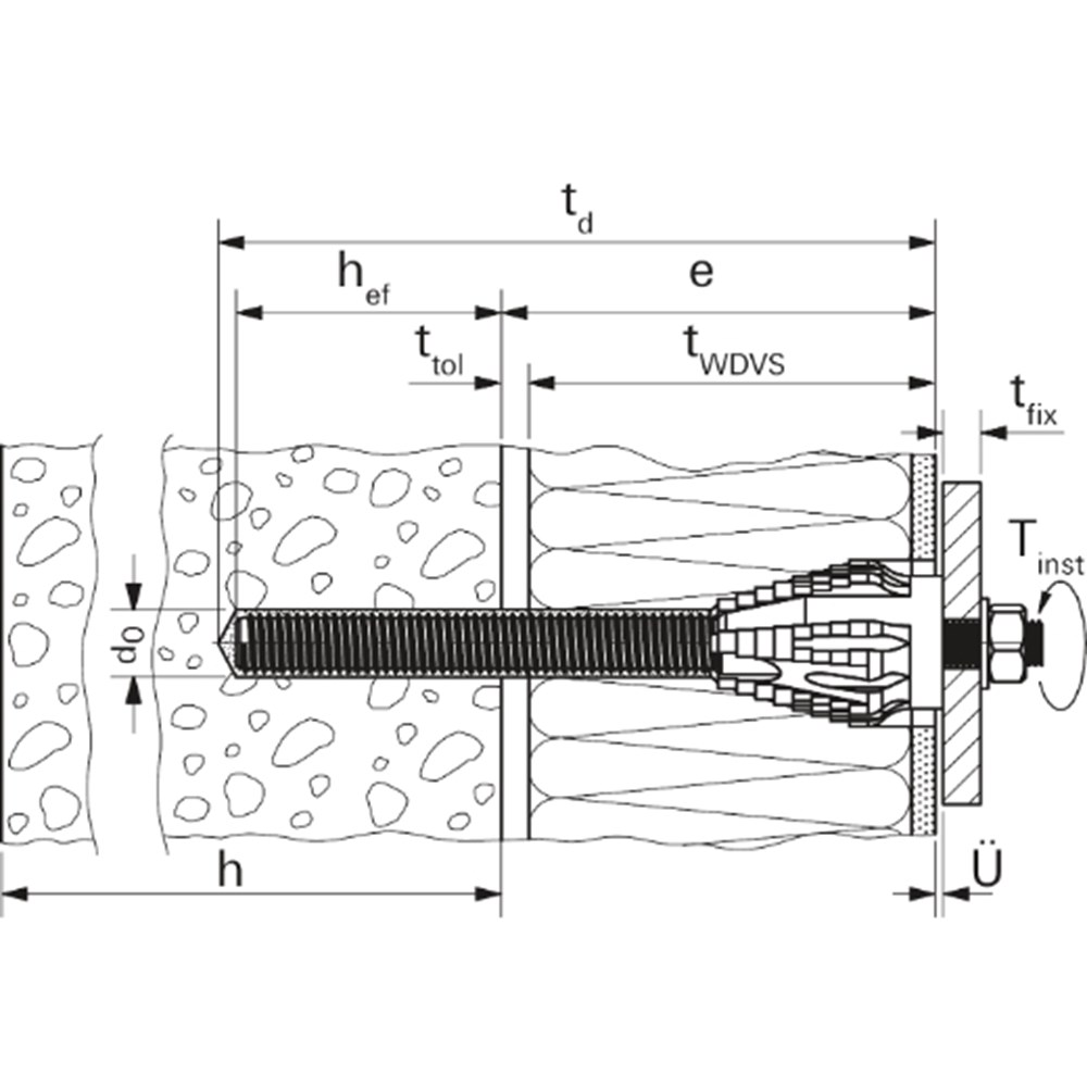 Het fischer Afstandsmontagesysteem TherMax is een oplossing voor een bevestiging in de buitenmuur of warmtebrug in de WDVS. Het systeem bestaat uit een speciale draadstang van gegalvaniseerd staal met een glasvezelversterkte conus, tapeinden en injectiehulzen voor de bevestiging in geperforeerde baksteen. In combinatie met de fischer Krachtige mortel FIS EM Plus, FIS V, FIS SB en de FIS GREEN is het systeem goedgekeurd voor talrijke bouwmaterialen. De draadstang met de glasvezelversterkte conus freest zich automatisch door de pleister in het isolatiemateriaal. De draadstang wordt in de injectiehuls met een injectiemortel in het bouwmateriaal verankerd. De conus op de kop van de draadstang onderbreekt de warmtebrug en neemt het tapeind van roestvast staal voor de buitenste bevestiging op. De TherMax bevestigt zware lasten zoals zonweringen, bewakingsmaatregel en satellietinstallaties in beton, cellenbeton en metselwerk van volle en geperforeerde baksteen.
