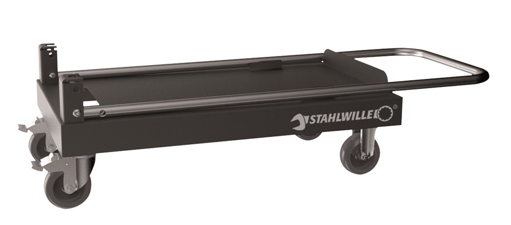 Voor gereedschapskisten nr. 13216N/2, 13216N/3, 13216N/4. Veilige bevestiging van de gereedschapskist met comfortabele ontgrendeling. Gebruik van de gereedschapskist wordt niet beperkt. Stabiele constructie uit staalplaat. 2 bokwielen en 2 zwenkwielen (diameter in mm 75 mm) met vastzetremmen. Praktische, inklapbare greep met aanslag. Maximale statische belastbaarheid: 150 kg. Levering zonder gereedschapskist.
