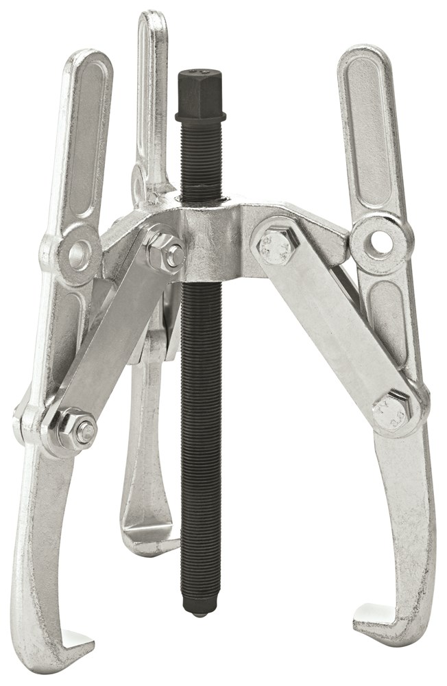 Drie-armig, met zwenkbare, in lengte verstelbare trekhaken, voor grote spanbereiken, verzinkt; voor het lostrekken van tandwielen, kogellagers, v-riempoelies en soortgelijke delen van een as of aandrijfas; te gebruiken als buiten- en binnentrekker; voor gebruik als binnentrekker moeten de haken worden gezwenkt en de spindel omgedraaid; de grote hefboomwerking zorgt voor een vaste zit op het los of uit te trekken deel.