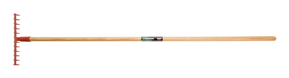 Tuinhark met geverniste essen steel, ideaal voor voorbereiding van grond voor het zaaien, om het zaad in te harken of te bedekken, om afval te verzamelen en bodem te verluchten