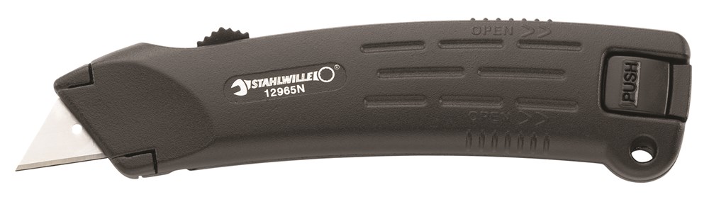 Mesje m.b.v. schuifknop verstelbaar. In de greep is plaats voor reserve mesjes. Verwisselen van mesje zonder gereedschap. Met ophangoog. Geschikt voor het snijden van karton, rubber, leer, hout enz. Behuizing uit zamac.
