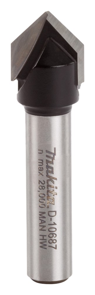 Hardmetalen V-groeffrees. Geschikt voor het kopiëren van snijwerk, graveerwerkzaamheden, verfraaiingen in massief hout, lijmhoudende houtsoorten zoals MDF, spaanplaat en kunststoffen. Passend op Makita Model: DRT50ZJX2, DRT50ZJX9, M3600, M3601, MT361, RP0900K, RP0910, RP1110C, RP1800FX, RP2300FCX, RT0700C, RT0700CX3, RT0700CX3J