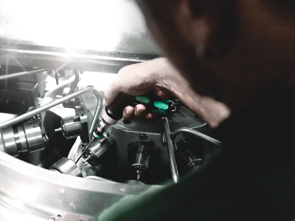 Wera draaimomentschroevendraaier. Kraftform-pistoolhandgreep voor zeer hoge draaimomentoverdracht, meerdelig voor snel en uiterst ergonomisch verantwoord schroeven. Variabele draaimomentinstelling, uiterst nauwkeurig. Vereist draaimoment eenvoudig instelbaar, zonder extra gereedschap. Schaalwaarde goed leesbaar. Rapidaptor-snelwisseltechnologie maakt razendsnel wisselen van bit mogelijk. Onbegrensd losdraaimoment voor het losdraaien van vastzittende schroeven. Meervoudige Kraftform-handgreep met geïntegreerde harde en zachte delen voor een hoge werksnelheid en bescherming van de handen. Geschikt voor plaatsing van bits met 1/4" buitenzeskant-aandrijving conform DIN ISO 1173-C 6,3 en E 6,3 (ISO 1173).