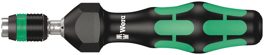 Wera draaimomentschroevendraaier. Variabele draaimomentinstelling, uiterst nauwkeurig. Vereist draaimoment eenvoudig instelbaar, zonder extra gereedschap. Schaalwaarde goed leesbaar. Met kliksignaal. Rapidaptor-snelwisseltechnologie maakt razendsnel wisselen van bit mogelijk. Onbegrensd losdraaimoment voor het losdraaien van vastzittende schroeven. Meervoudige Kraftform-handgreep met geïntegreerde harde en zachte delen voor een hoge werksnelheid en bescherming van de handen. Geschikt voor plaatsing van bits met 1/4" buitenzeskant-aandrijving conform DIN ISO 1173-C 6,3 en E 6,3 (ISO 1173).