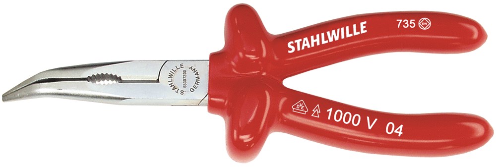 DIN ISO 5745, model B (45° zijwaarts gebogen), platronde, lange bekken, met brandergat voor moeren en stiftschroeven, getande grijpvlakken, precisie-snijkanten voor harde en zachte draadsoorten, snijkanten inductief gehard ca. 60 HRC.