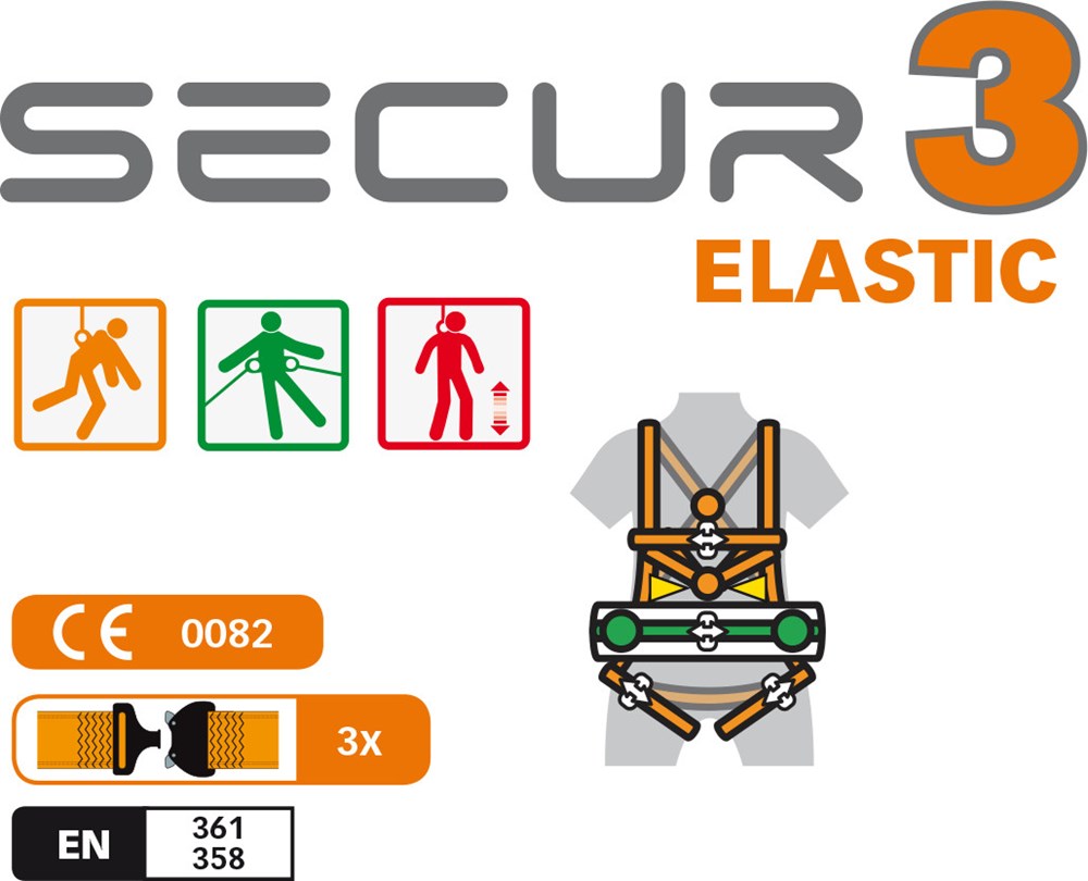 Veiligheidsharnas "SECUR 3 ELASTIC" met bevestigingspunt op de rug
