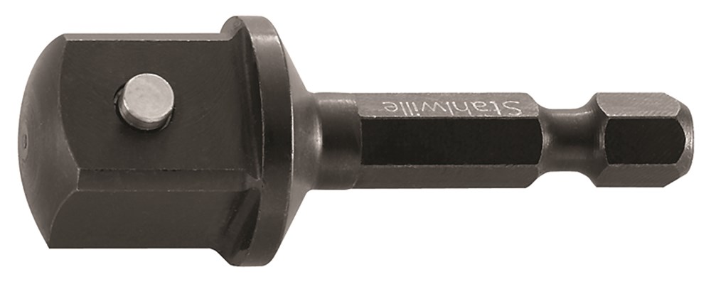 DIN 7428/ISO 3317, met buitenzeskant, voor machinaal gebruikte IMPACT-doppen DIN 3129/ISO 2725-2 met binnenvierkant DIN 3121/ISO 1174-2, met grotere steeldiameter voor betere aansluiting van de IMPACT-doppen, vierkant met verende stift, Chrome-Alloy-Steel, gebruineerd.