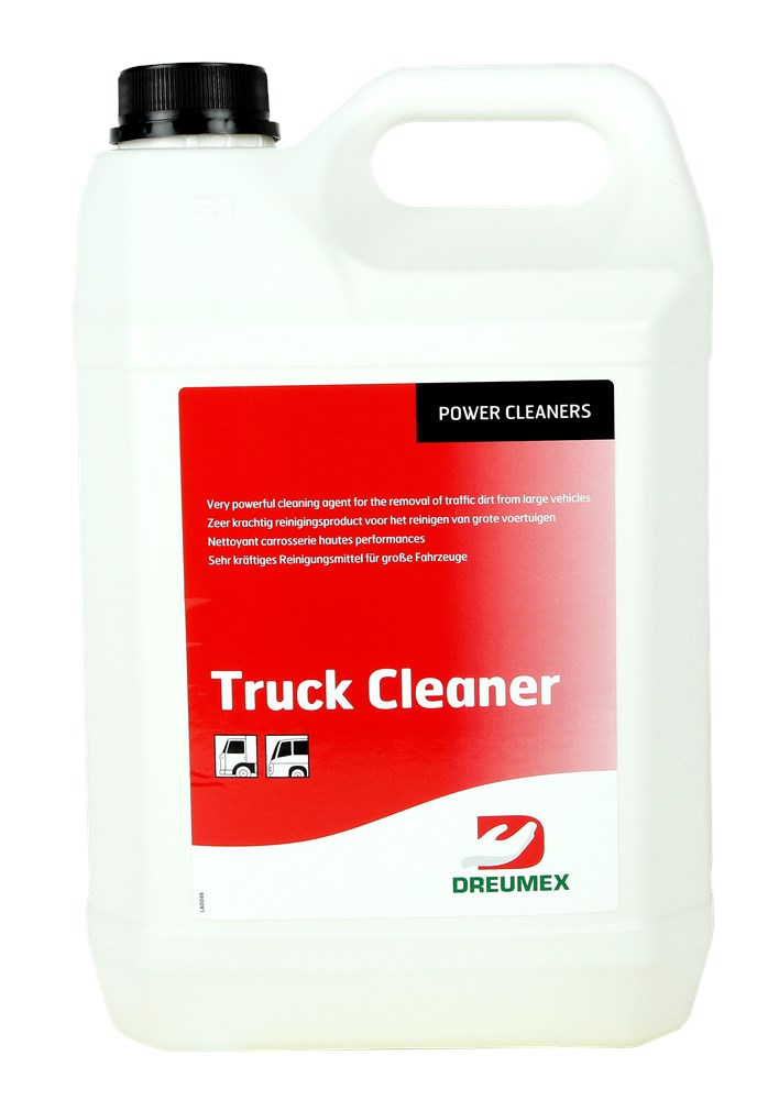 Dreumex Truck Cleaner is speciaal ontwikkeld voor het borstelloos reinigen van vrachtwagens. Het is een sterk reinigingsmiddel dat het verkeersvuil van vrachtwagens, aanhangers, opleggers en bestelwagens losweekt en verwijdert. Het product is voorzien van corrosiewerende bestanddelen. Breng voor de beste werking de Dreumex Truck Cleaner van onder naar boven aan op het voertuig en laat het reinigingsmiddel enkele minuten inwerken. Vervolgens kan het voertuig van boven naar beneden afgespoten worden met een hoge drukspuit. Het gebruik van warm water bij het opbrengen en afspuiten verhoogt de werking.