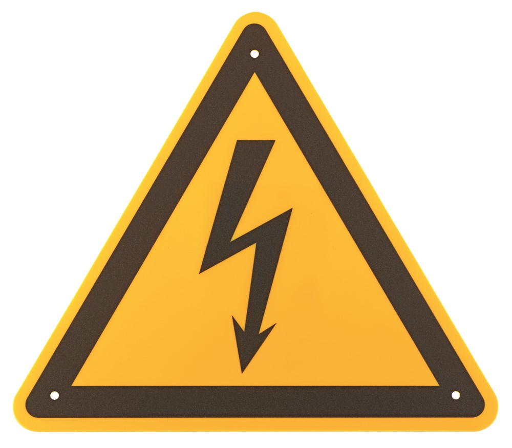 Waarschuwing voor gevaarlijke elektrische spanning, DIN EN ISO 7010-W012, uit kunststof.
