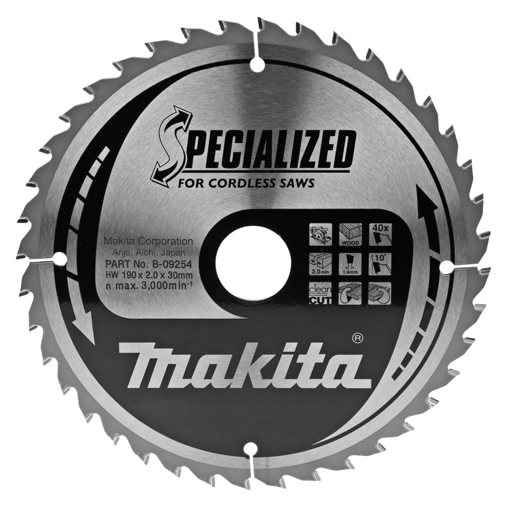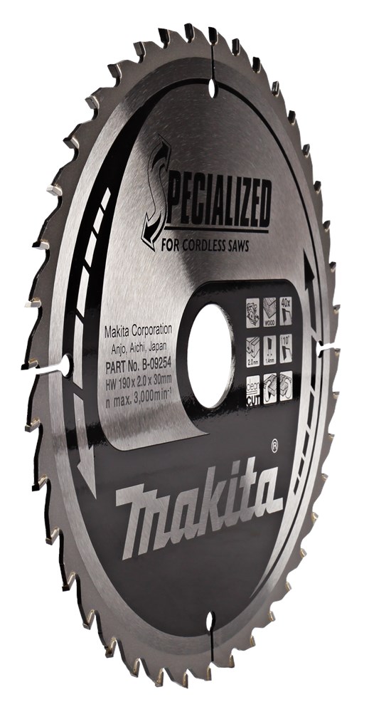 Cirkelzaagbladen ontwikkeld voor accu cirkelzagen. Accumachines zijn gebaat bij zo min mogelijk weerstand. Want hoe minder weerstand, hoe minder energie de machine van de accu vraagt. Zo kun je dus langer zagen op één volle accu. Deze cirkelzaagbladen hebben onder andere een extra dun standblad om dit te realiseren. Verkrijgbaar in verschillende tandzettingen voor diverse afwerkingen en diktes van materiaal. Uitermate geschikt voor: zachthout/overlangs en afkorten, hardhout/overlangs en afkorten. Geschikt voor: zachthout/fijn afkorten, hardhout/fijn afkorten, duplex-, triplex- en multiplexhout. Passend op Makita Model: BSR730WAE
