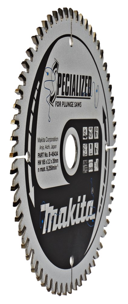 Cirkelzaagbladen ontwikkeld voor invalzagen. Beschikbaar voor hout. Het ontwerp zorgt voor een mooie zaagsnede. Deze bladen hebben een gepatenteerde antivibratie technologie. De lagere vibratie zorgt voor een zuivere afwerking. Door de hoge stabiliteit van het blad wordt gemakkelijk de eerste aanzet gemaakt. ATB vertanding. Ook zijn 165 mm Mforce handcirkelzaagbladen zeer geschikt voor de invalzaag. Uitermate geschikt voor: zachthout/fijn afkorten, hardhout/fijn afkorten. Geschikt voor: bekistingshout, spaanplaat, OSB, duplex-, triplex- en multiplexhout, MDF, laminaat, parket. Ga naar www.makita.nl om het juiste blad te kiezen. Onderstaand artikel (B-45434) is uitermate geschikt voor het zagen van MDF. Passend op Makita Model: DSP600ZJ, DSP600ZJ2, DSP601ZJU, DSP601ZJU2, SP6000J, SP6000J1X, SP6000J1X2, SP6000K1X