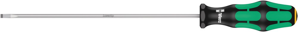 Hoogwaardige Kraftform Plus-schroevendraaier met kling voor elektriciens. Meervoudige Kraftform Plus-handgreep om prettig en ergonomisch verantwoord te kunnen werken en blaren en schuurplekken te voorkomen. Harde gripzones voor een hoge werksnelheid, zachte gripzones voor een hoge draaimomentoverdracht. De punt van Wera Lasertip-schroevendraaiers wordt met laserstralen microscopisch fijn opgeruwd. Dit ruwe oppervlak ‘bijt’ zich letterlijk vast in de schroefkop. Onbedoeld wegglijden behoort zo tot het verleden. "Take it easy"-toolfinder met kleurcodering op profiel en maatcode – voor het eenvoudig en snel vinden van het benodigde gereedschap. Zeskantige wegrolbescherming verhindert telkens wegrollen op de werkplek.