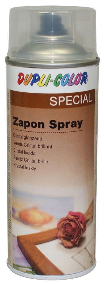 DUPLI-COLOR Cristal Zapon spray is een kwalitatief hoogwaardige blanke lak. Zeer geschikt bij herstellingen met acryllakken of lakken op nitro-cellulosebasis, zoals metallic lak, fluorescerende lak, etc. Beschermt en fixeert gedroogde kruiden, bloemen en stro, raffia, rieten vlechtwerk, werkjes uit zoutdeeg, tekeningen met koolstof, papier, karton en verschillende soorten (ruw) hout. Fixeert en impregneert foto's, beschermt metalen onderdelen tegen oxidatie (saponificatie), bvb. zilver, koper, ijzer, staalplaat, messing, chroom, nikkel, aluminium, tin,...