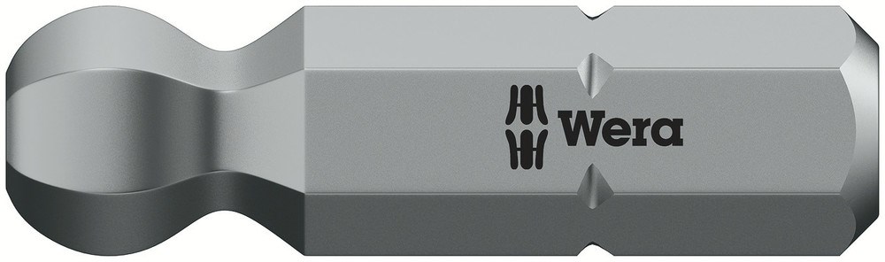 Extreem harde Wera bits voor binnenzeskant-schroeven, voor universeel gebruik. Dankzij de kogelvormige aandrijfprofielen is het mogelijk om de gereedschapsas t.o.v. de hartlijn van de schroef naar buiten te verleggen of te zwenken, waardoor het ook mogelijk wordt om ‘om de hoek‘ te schroeven. 1/4" zeskant, passend in houders conform DIN ISO 1173-D 6,3.
