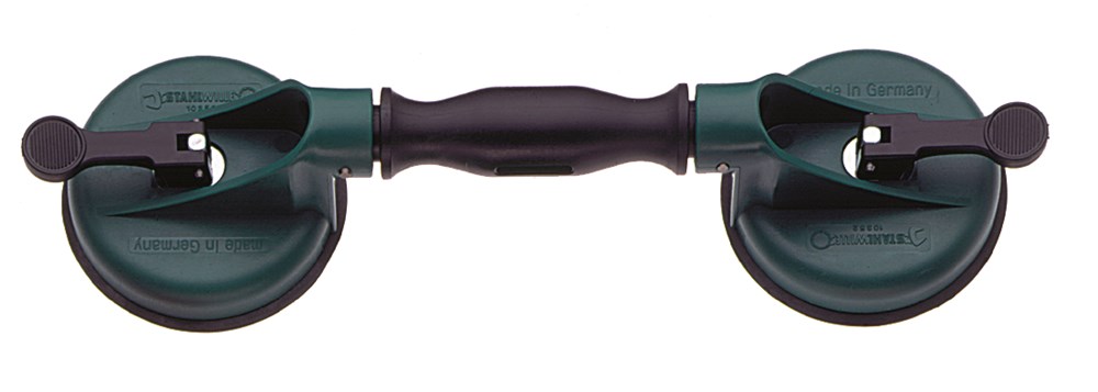 Zuigvlakken diameter in mm 120 mm, met vastzuigmechanisme en veiligheidsblokkering; hoogwaardig kunststof; zuur- en oliebestendig. Met ogen voor sjorband in de greep. Draagkracht 60 kg.